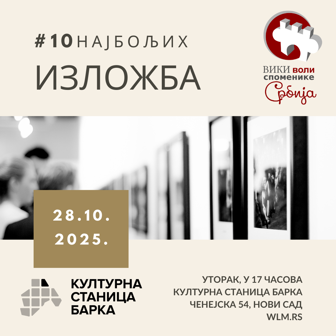 Изложба Вики воли споменике Србија 2025. се одржава у сарадњи са Културном станицом Барка у Новом Саду, Ченејска 54, од 28. октобра са почетком у 17 часова и трајаће до 31. октобра. Посетиоци имају прилику да погледају 10 најбољих фотографија националног такмичења, чији аутори настављају учешће у светској селекцији. Добро дошли на изложбу која слави културно наслеђе Србије и лепоту споменика кроз фотографију!